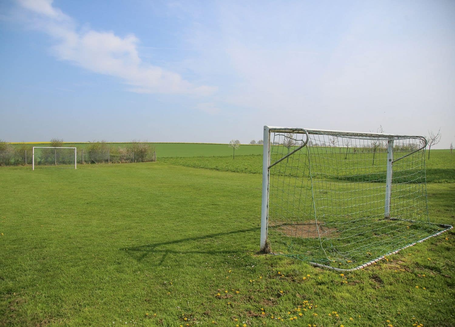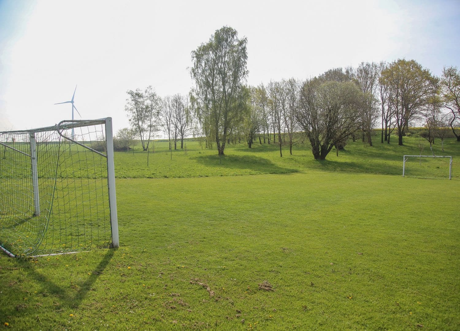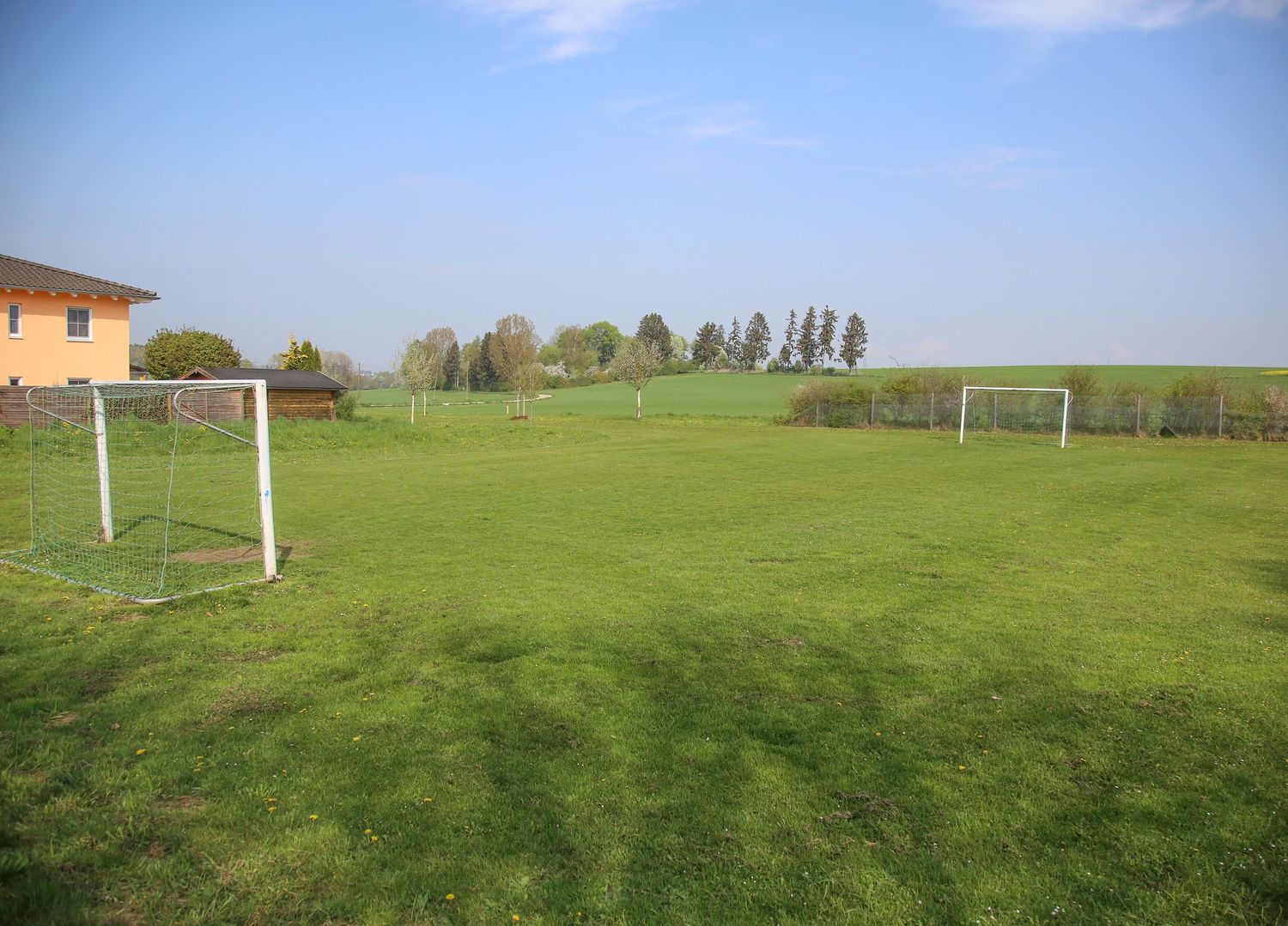 Am Ortsrand von Pullhausen liegt dieser Bolzplatz zum Fußballspielen auf Rasen.