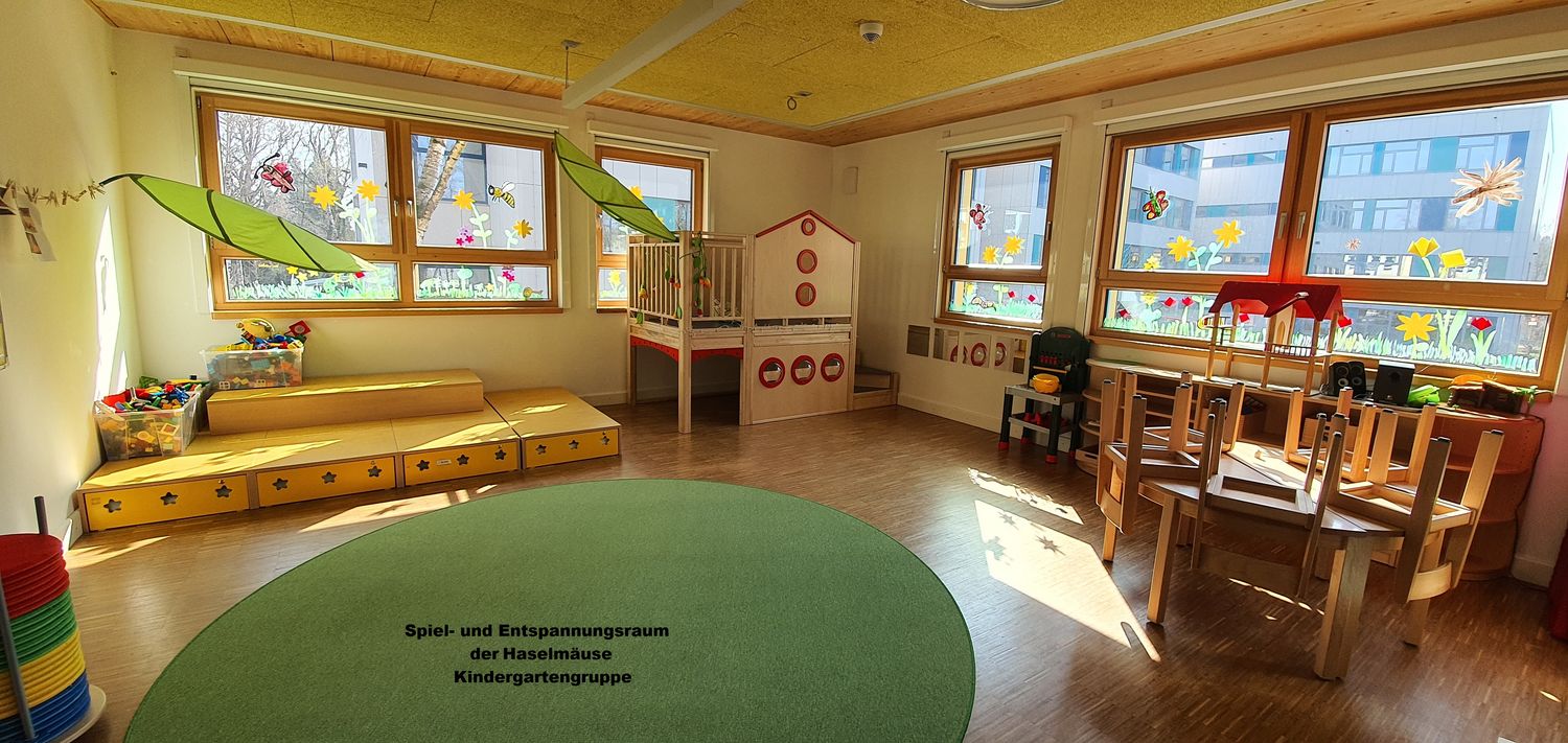 Auf drei Etagen darf hier gespielt, gelernt und entspannt werden. Jede Gruppe verfügt über einen großzügigen Gruppen- und einen Nebenraum. Zusätzliche Gemeinschaftsbereiche wie der Bewegungsraum, die Werkstatt, das Kindercafé sowie bespielbaren Flure und Balkone erweitern das Platzangebot.