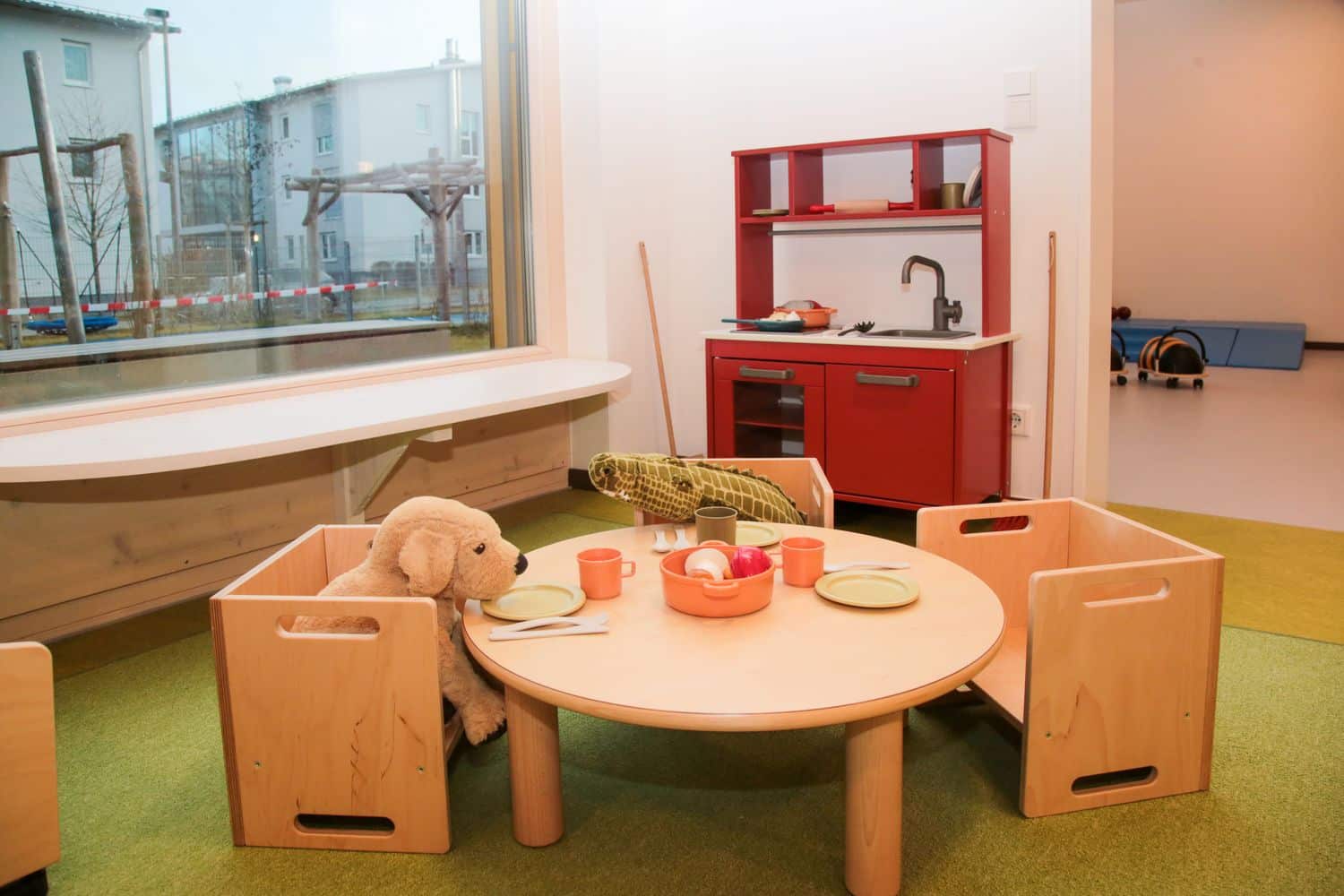 Unsere Kindertagesstätte wurde im März 2023 eröffnet und liegt in verkehrsberuhigter Lage direkt an der Amper. Die Einrichtung bietet Raum für zwei Kindergarten- und eine Krippengruppe.