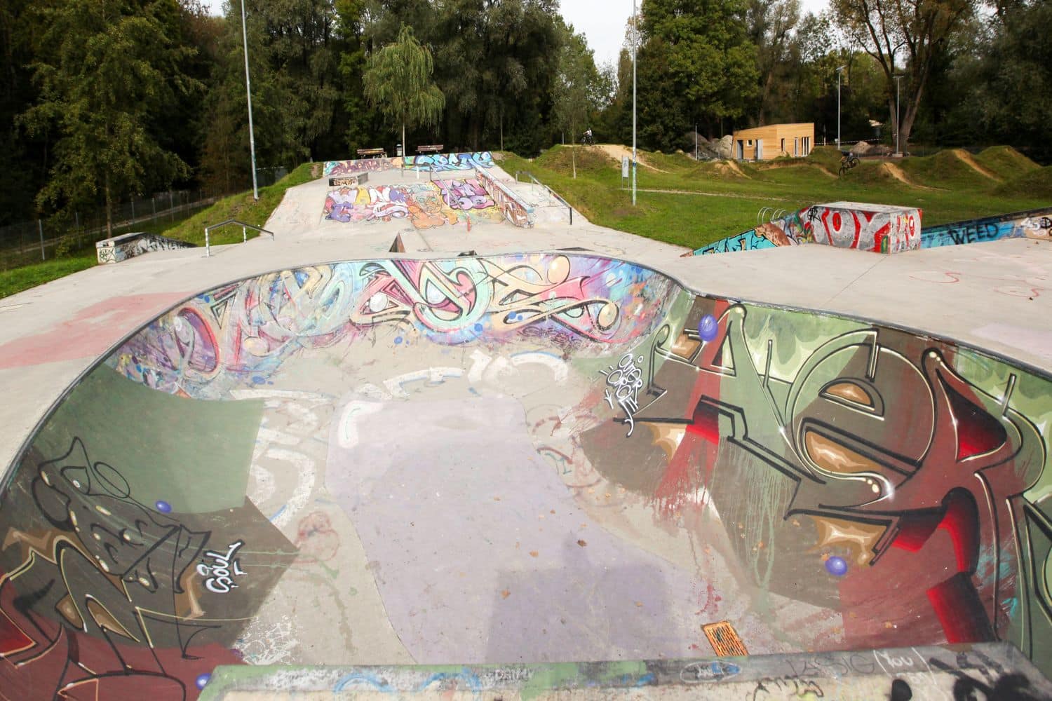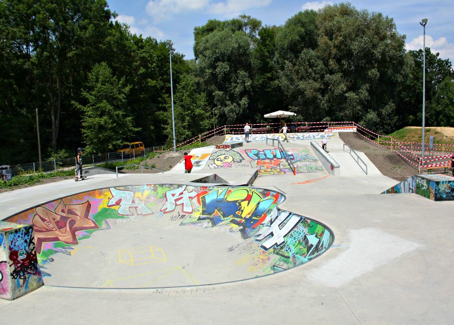 Der multifunktionale Skater-Park für BMX, Inline Skaten, Snakeboards, Skateboards befindet sich in der Kufsteiner Straße in Dachau.