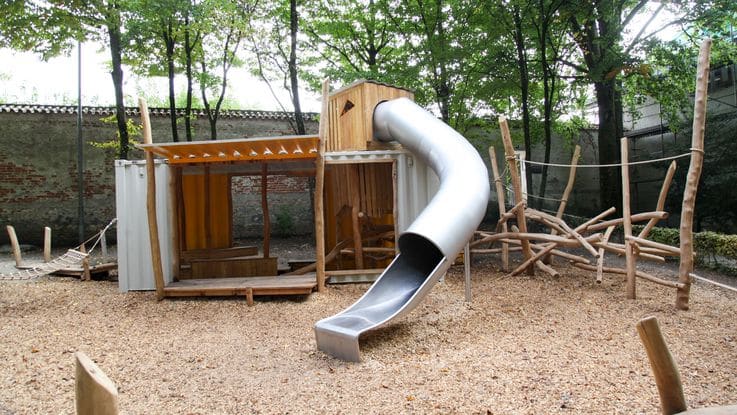 Durch seine besondere Lage am Eingang zum Hofgarten direkt an der alten Schlossmauer ist der Spielplatz ruhig und geborgen. Aufgrund des alten Baumbestandes findet man auf dem Spielplatz auch im Hochsommer immer ein angenehmes, schattiges Plätzchen.