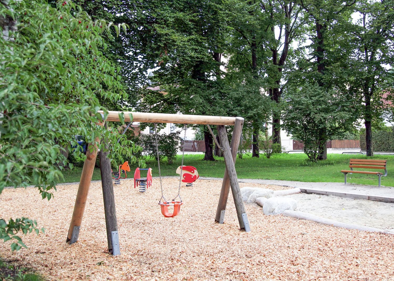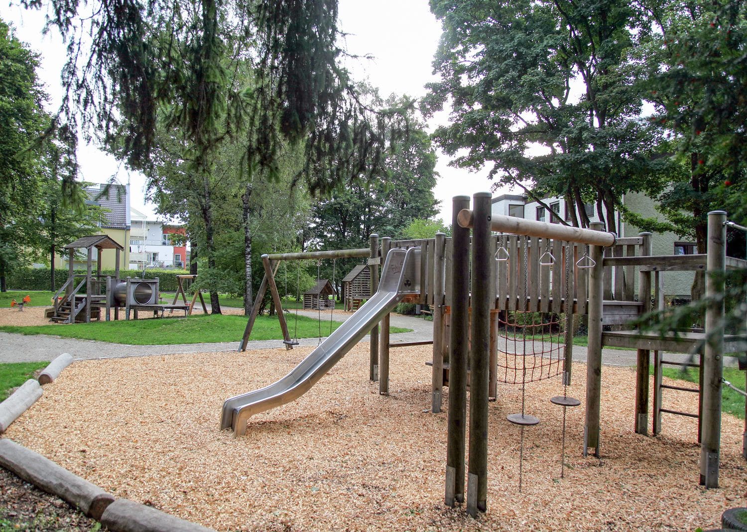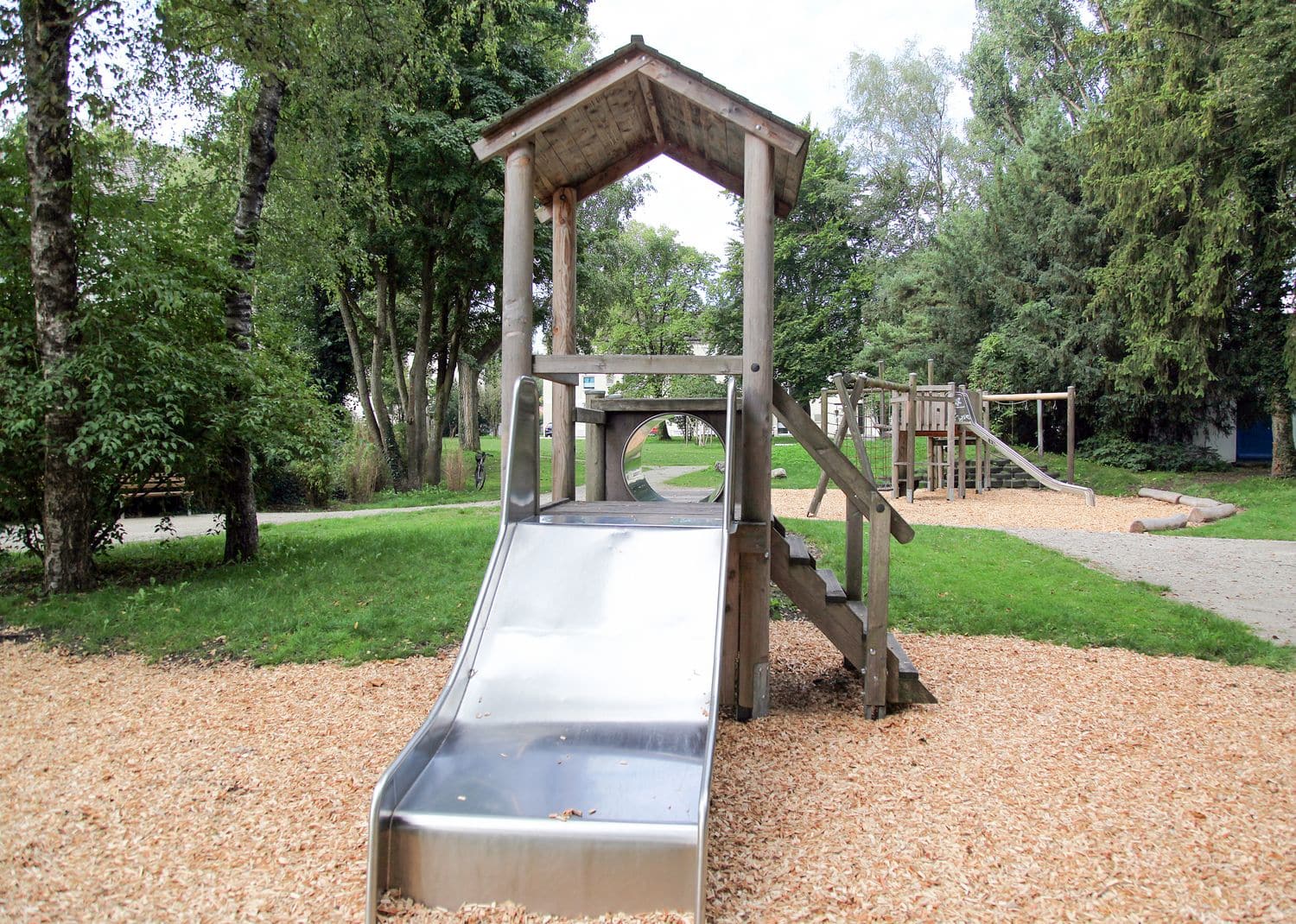 Der Spielplatz liegt in der gleichnamigen Grünanlage. Vielseitige Spiel- und Klettermöglichkeiten für unterschiedliche Altersgruppen sind ebenso vorhanden wie Spielbereiche für Kleinkinder. Nicht zu vergessen ist eine Tischtennisplatte, die von Groß und Klein genutzt werden kann.