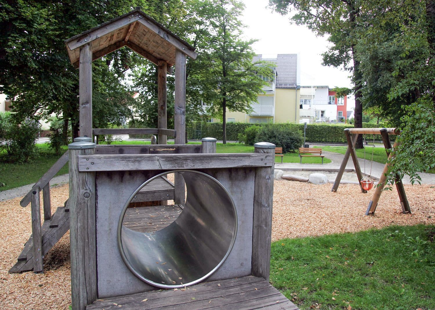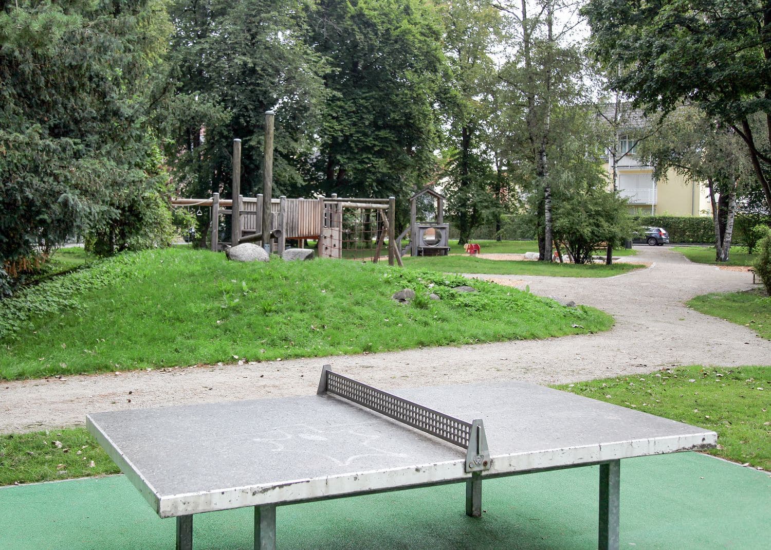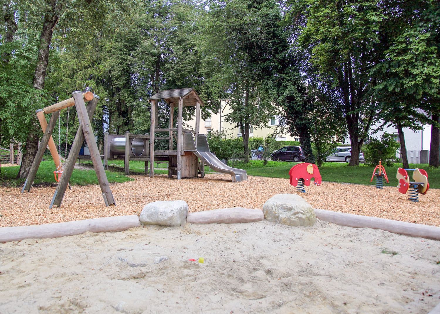 Der Spielplatz liegt in der gleichnamigen Grünanlage. Vielseitige Spiel- und Klettermöglichkeiten für unterschiedliche Altersgruppen sind ebenso vorhanden wie Spielbereiche für Kleinkinder. Nicht zu vergessen ist eine Tischtennisplatte, die von Groß und Klein genutzt werden kann.