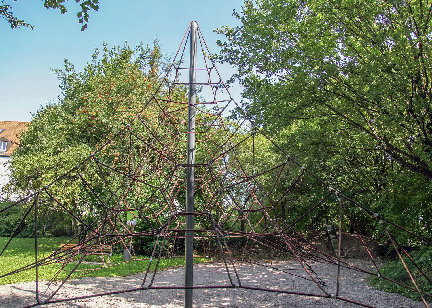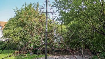 Der Spielplatz eignet sich eher für größere Kinder. Trotz der Lage nahe dem vielbefahrenen Bürgermeister-Zauner-Ring ist die Anlage dank der guten Eingrünung sehr idyllisch. Anwohner nutzen die Grünfläche zum Aufenthalt im Grünen.