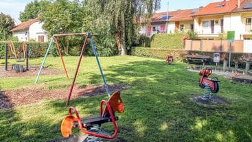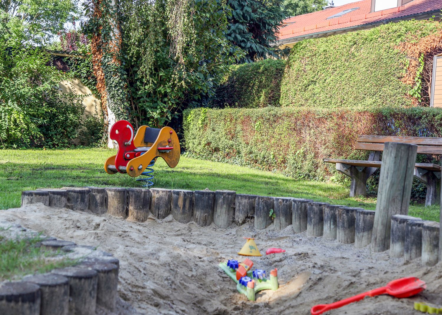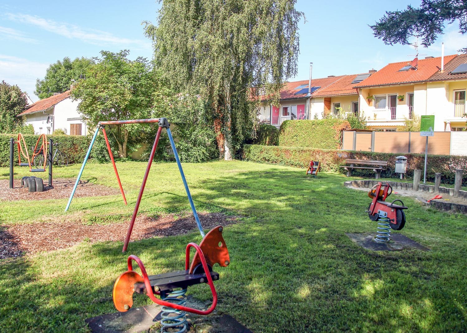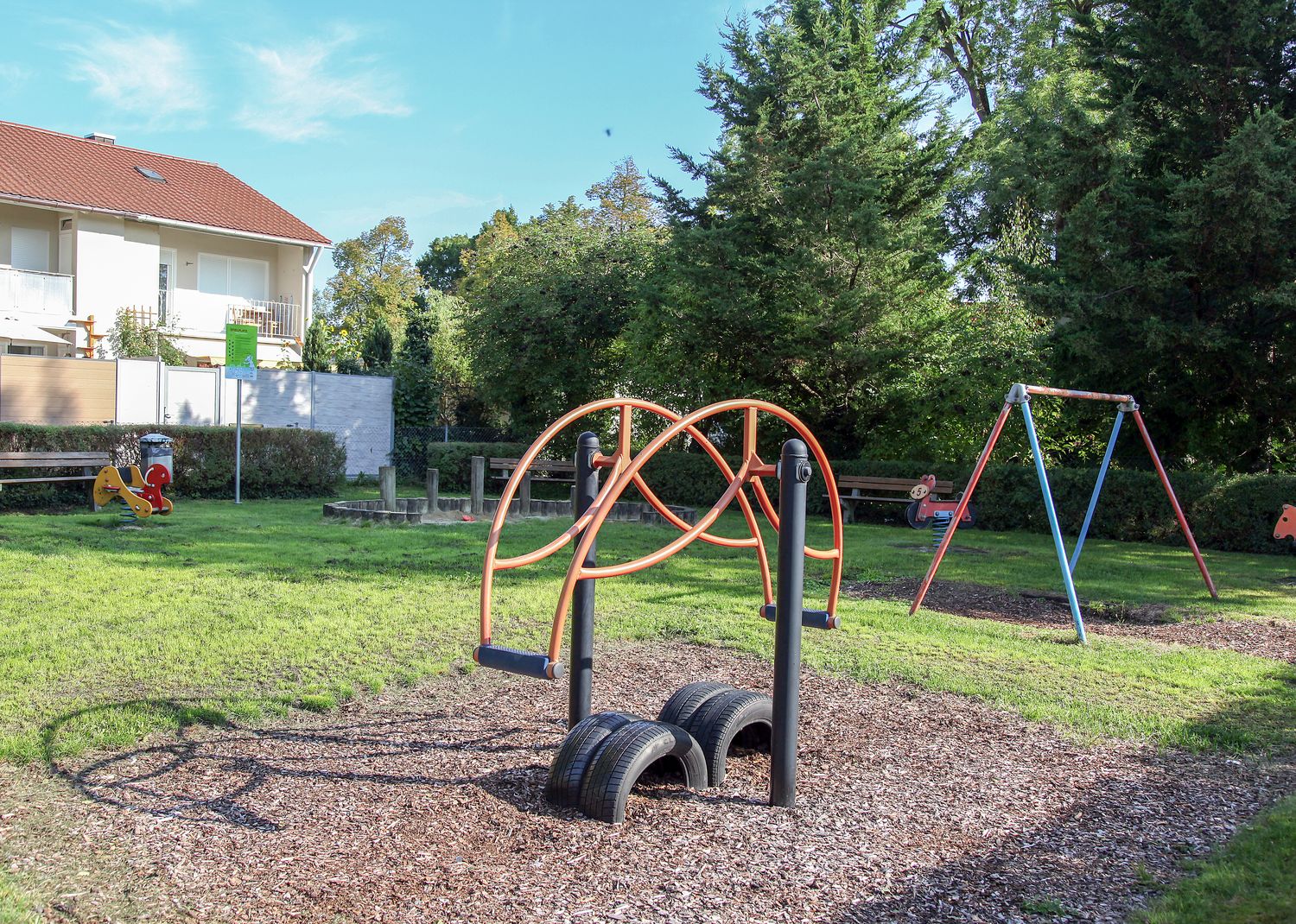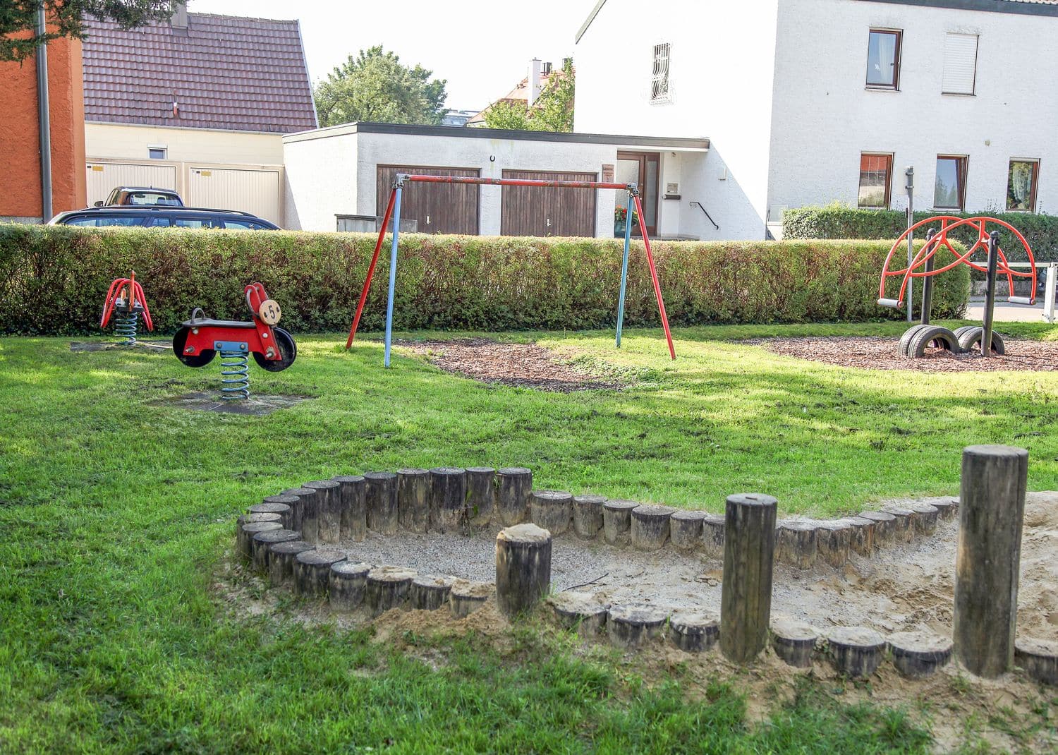 Der Spielplatz liegt mitten in einem Wohngebiet und ist sehr einfach ausgestattet. Aufgrund seines Spielangebotes und der Heckeneinfassung bietet er sich für Kleinkinder an.
