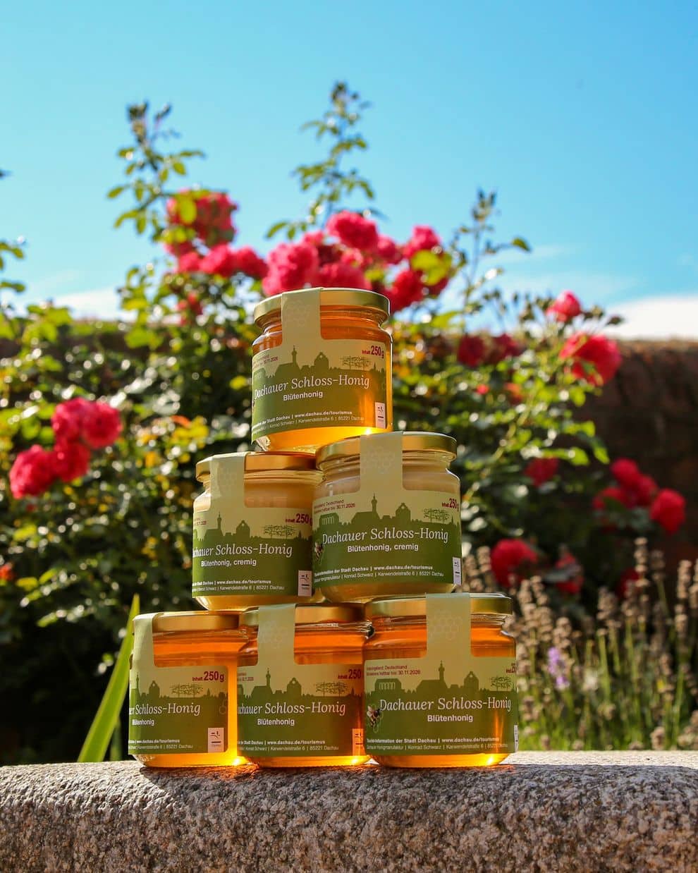 Der Sommer ist zurück – und mit ihm der begehrte Honig der Dachauer Schlossbienen. In der attraktiven Souvenirgröße mit jeweils 250 g kosten die Sorten Blütenhonig flüssig sowie Blütenhonig cremig wie im Vorjahr 4,50 € je Glas und sind ab sofort in der städtischen Tourist-Information erhältlich.