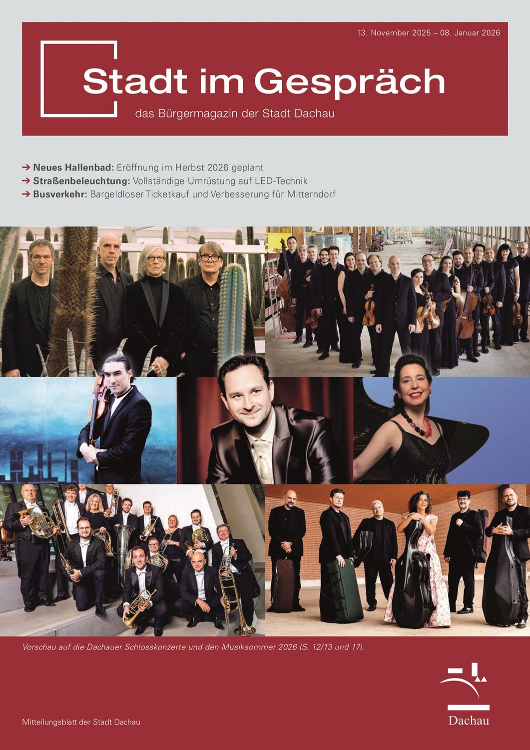 Informationen aus erster Hand: Das Bürgermagazin der Stadt Dachau informiert Sie direkt aus dem Rathaus über wichtige Themen im Stadtleben, erläutert Entscheidungen des Stadtrats sowie deren Hintergründe, liefert Veranstaltungstipps und bringt Ihnen die Kunst- und Kulturszene Dachaus näher.