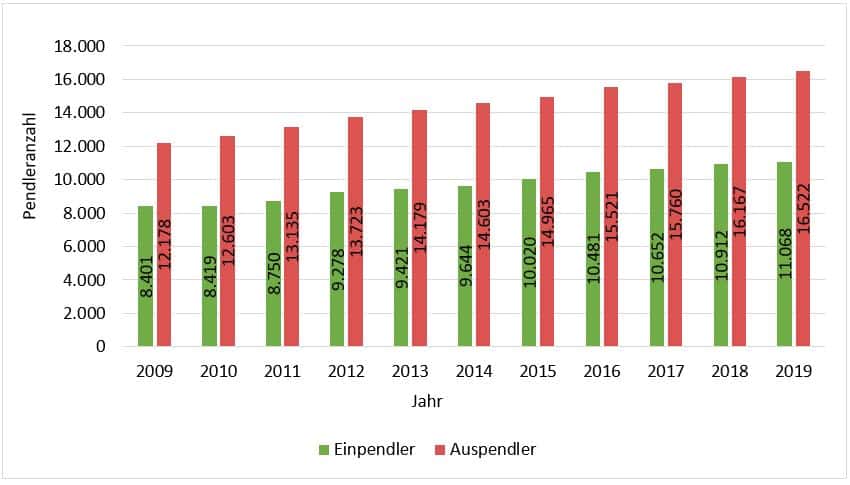 Auspendler: 16.522 (Stand: Juni 2019, BA und LfStat 2021)