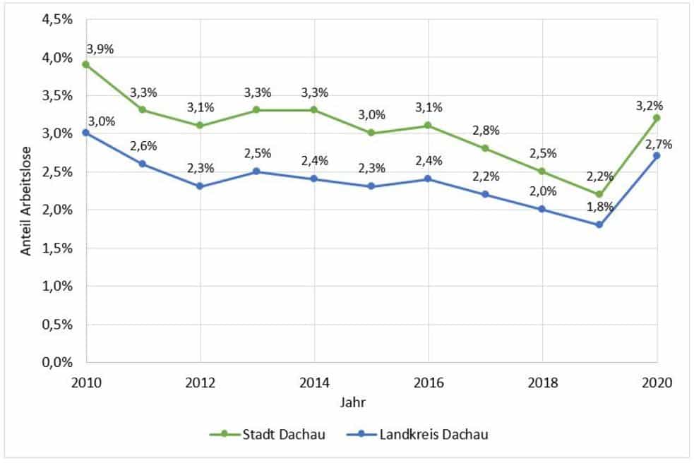 Landkreis Dachau: 2,7 % (Stand: 2020, Agentur für Arbeit Freising 2021)