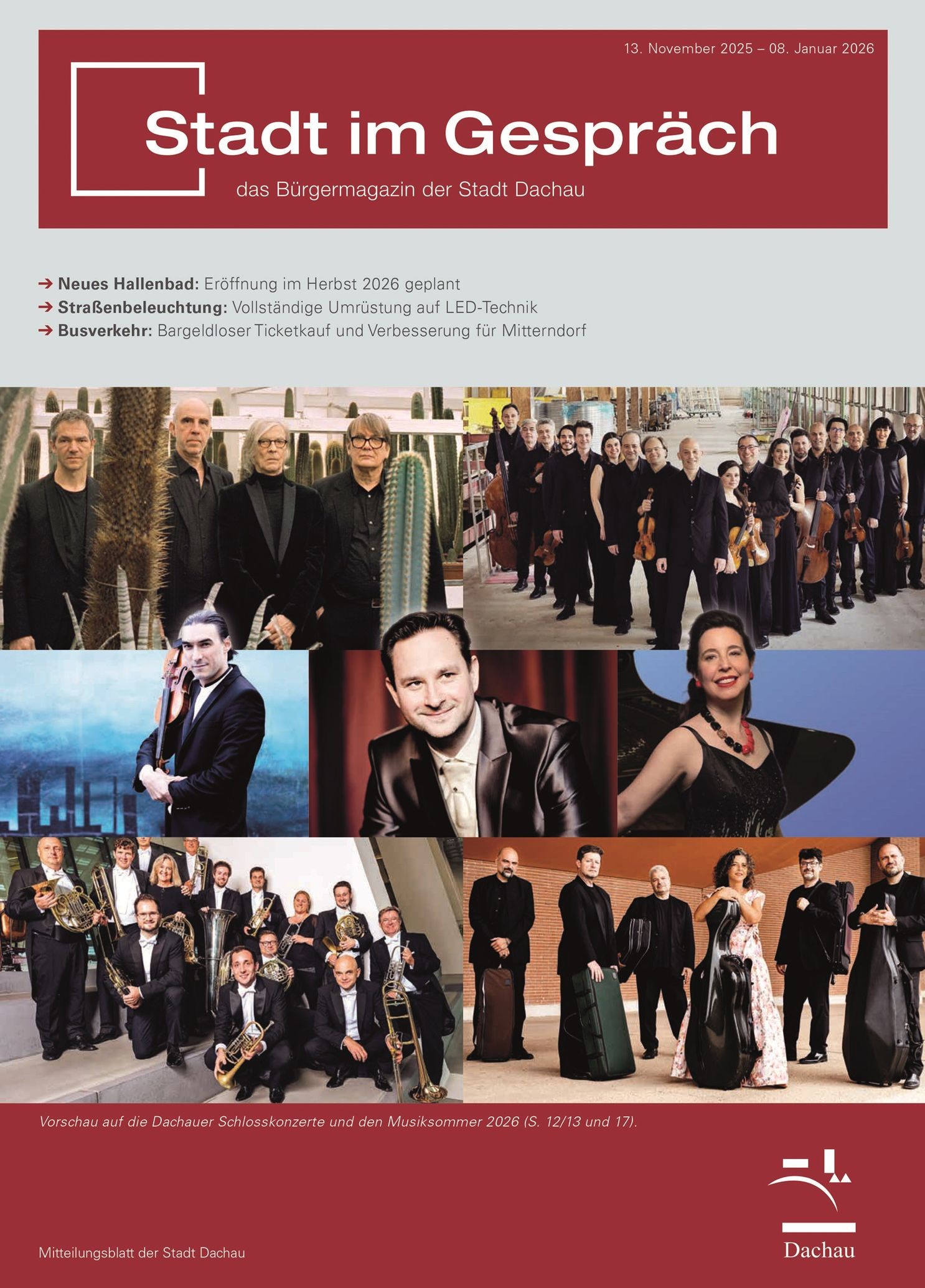 Informationen aus erster Hand: Das Bürgermagazin der Stadt Dachau informiert Sie direkt aus dem Rathaus über wichtige Themen im Stadtleben, erläutert Entscheidungen des Stadtrats sowie deren Hintergründe, liefert Veranstaltungstipps und bringt Ihnen die Kunst- und Kulturszene Dachaus näher.
